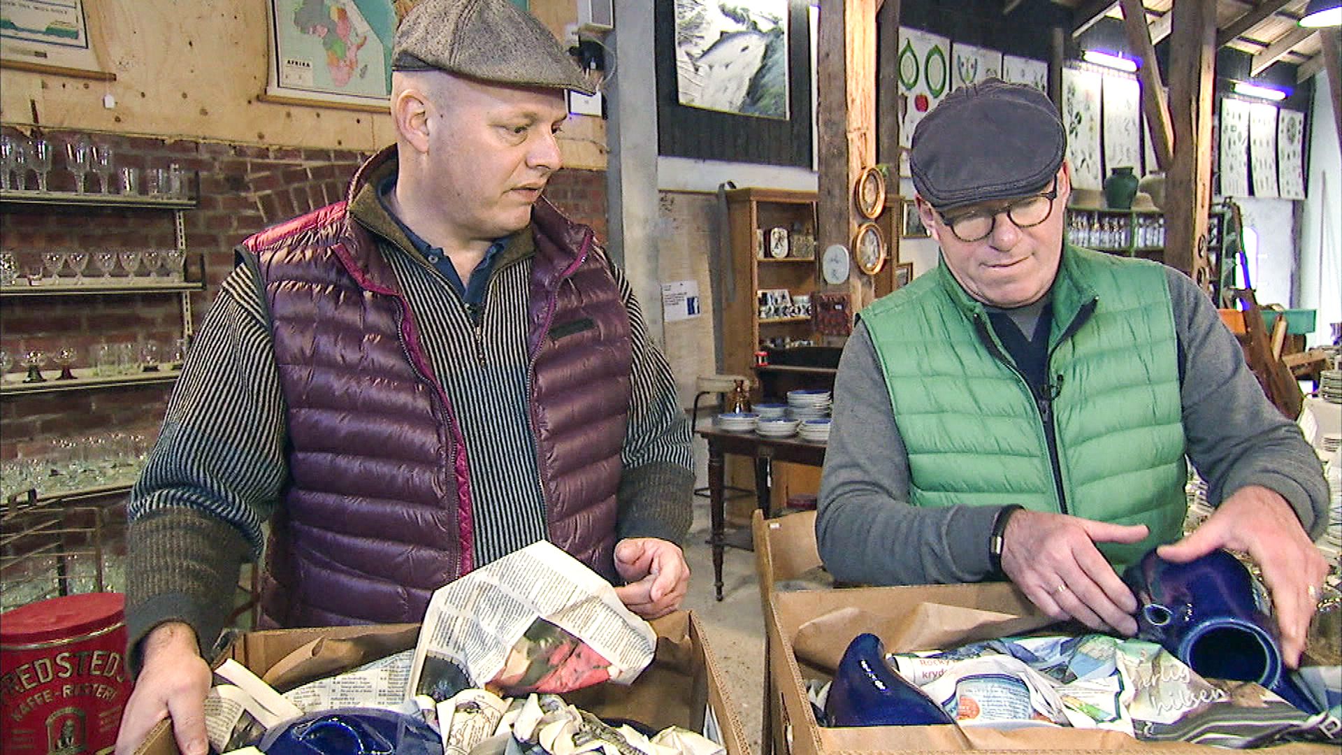 } Card 2. Osa 2/13 Description: Tanskalaiset Lasse ja Sofie ovat tyytyväisiä antiikkikaupassa tekemäänsä löytöön, vaikka ymmärsivätkin ostavansa sian säkissä. Katrine etsii vanhaa keramiikkaa valokuvasarjaansa varten. Lasse ihastuu pieneen, mutta kalliiseen maljakkoon. T: DR, 2015.