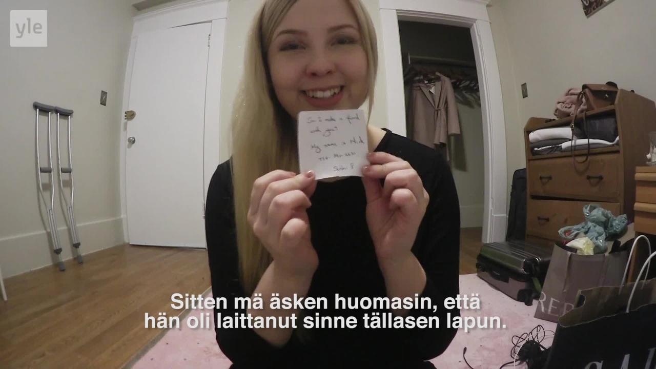 "description": "Au pair -Johanna löytää viestin nenäliinapaketista. Ravintolan tarjoilija on sujauttanut viestin nuhanenälle.\n\n“Istuttiin au pairien kanssa iltaa, ja tarjoilija antoi mulle nenäliinapaketin. Nyt löysin täältä viestin. Mitä pitäis ajatella?” yllättynyt Johanna kertoo päiväkirjakameralle.\n\nAu pairit Kanadassa -jaksot Areenassa, ja ne esitetään myös tiistaisin klo 20.30 Yle TV2:lla.",
