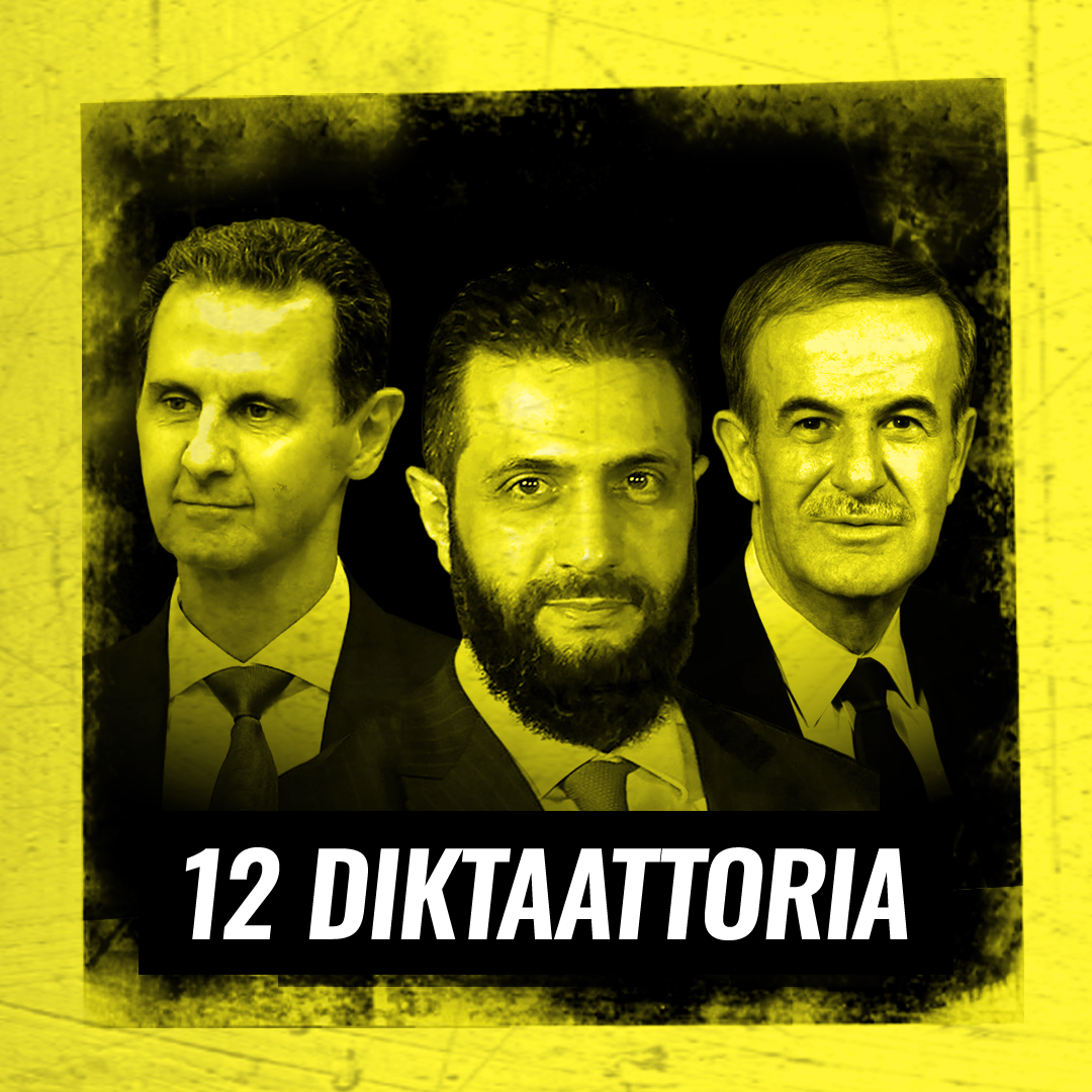 Tabs Tab 1 of 2 Jaksot Card Stalinistit: Hafiz al-Assad, Bashar al-Assad ja Ahmed al-Shara, Syyria Description: Syyrian johdossa ei kansalaisten näkökulmasta ole onnistunut sen enempää sotilas kuin lääkärikään, mutta onnistuisiko entinen terroristi Ahmad Hussein al-Shara, joka on tunnettu myös nimellä Abu Muhammad al-Jawlani? Kysymys on absurdi, mutta erittäin ajankohtainen.