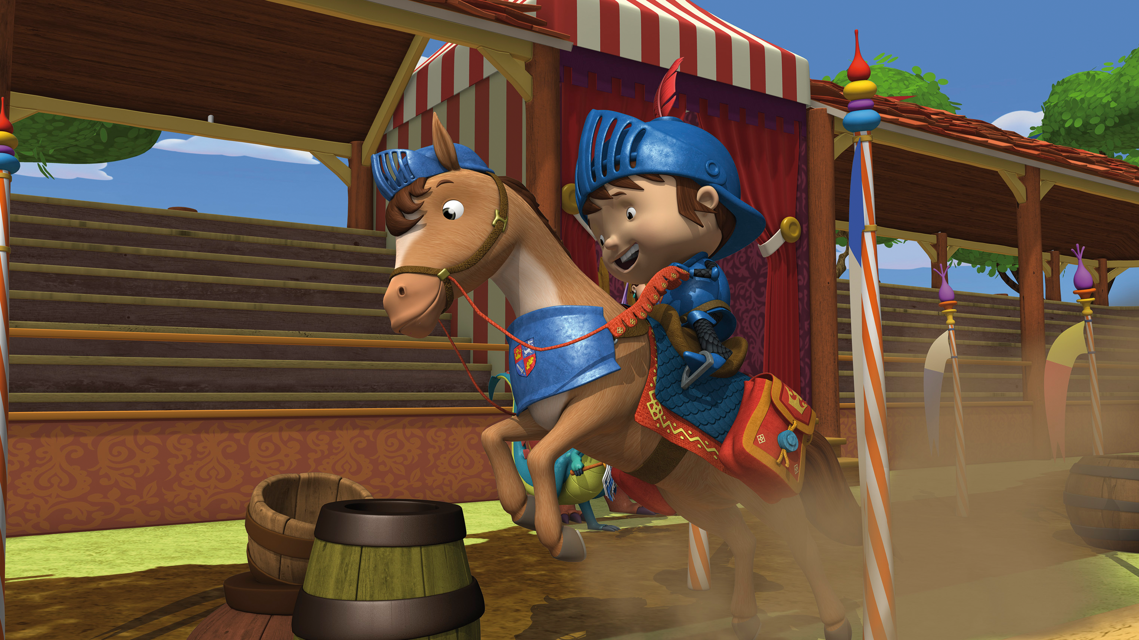 Card Description: Innokas Mikke seikkailee linnojen, lohikäärmeiden, viikinkien ja peikkojen maailmassa. Kuningas on tutkimassa kaukaisia maita, ja kuningatar on antanut Miken tehtäväksi valtakunnan suojelemisen. Mikke ei kuitenkaan ole vielä valmis ritari! Matkalla hän oppii vastuullisuutta ja sitä, miten tehdään asiat oikein. Sarja tapahtuu keskiaikaisessa maailmassa, jossa Miken kavereina ovat velhoksi opiskeleva Viivi-sisko, lohikäärmeet Roihu ja Roisku sekä Galahad-hevonen. Card JSON{