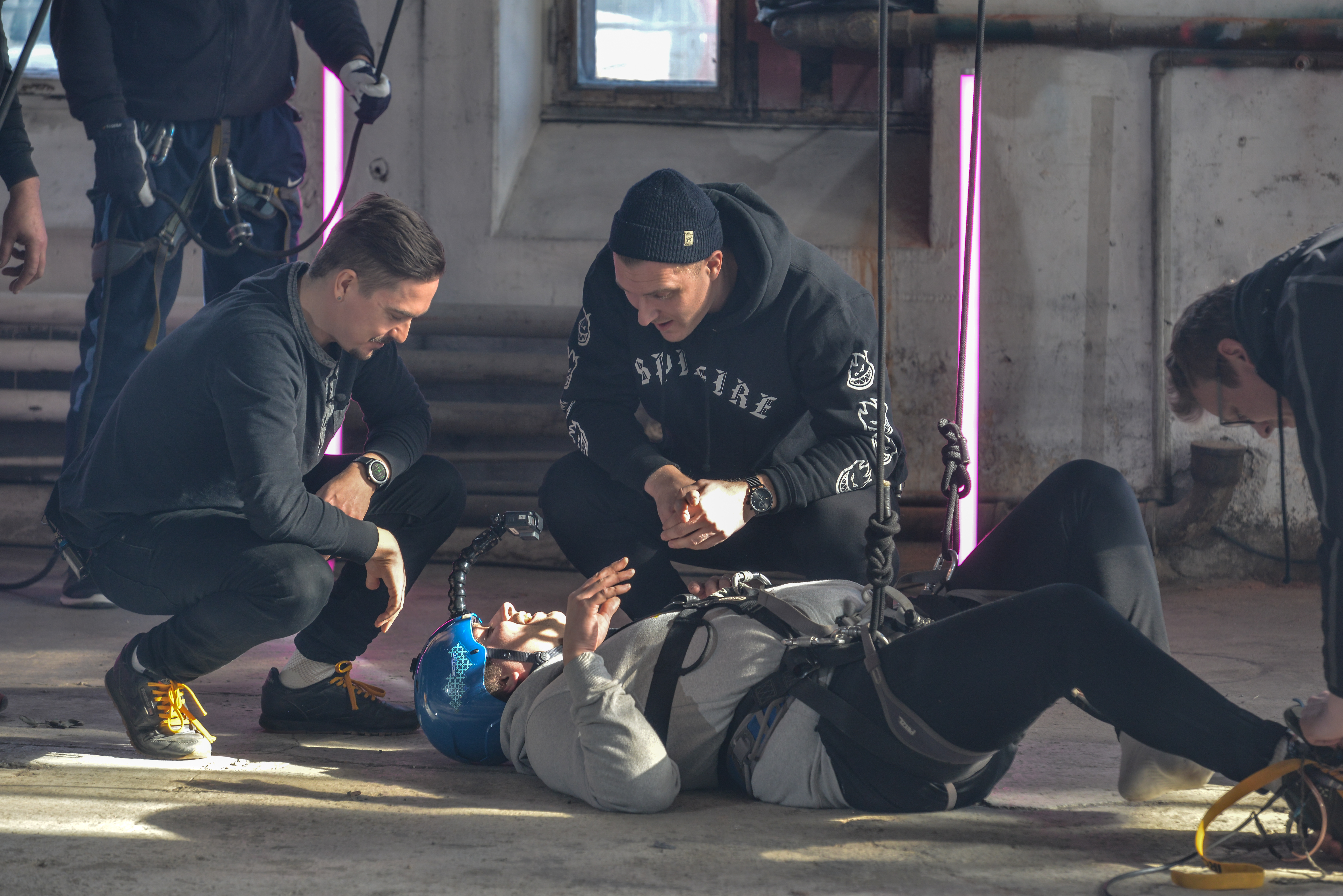 "description": "\"Kenen siihen pitikään mennä alle?\" Näin stunt-ryhmä valmisteli tempun, jossa kahvakuula pysäytti Vikin päälle putoavan jääkaapin.",