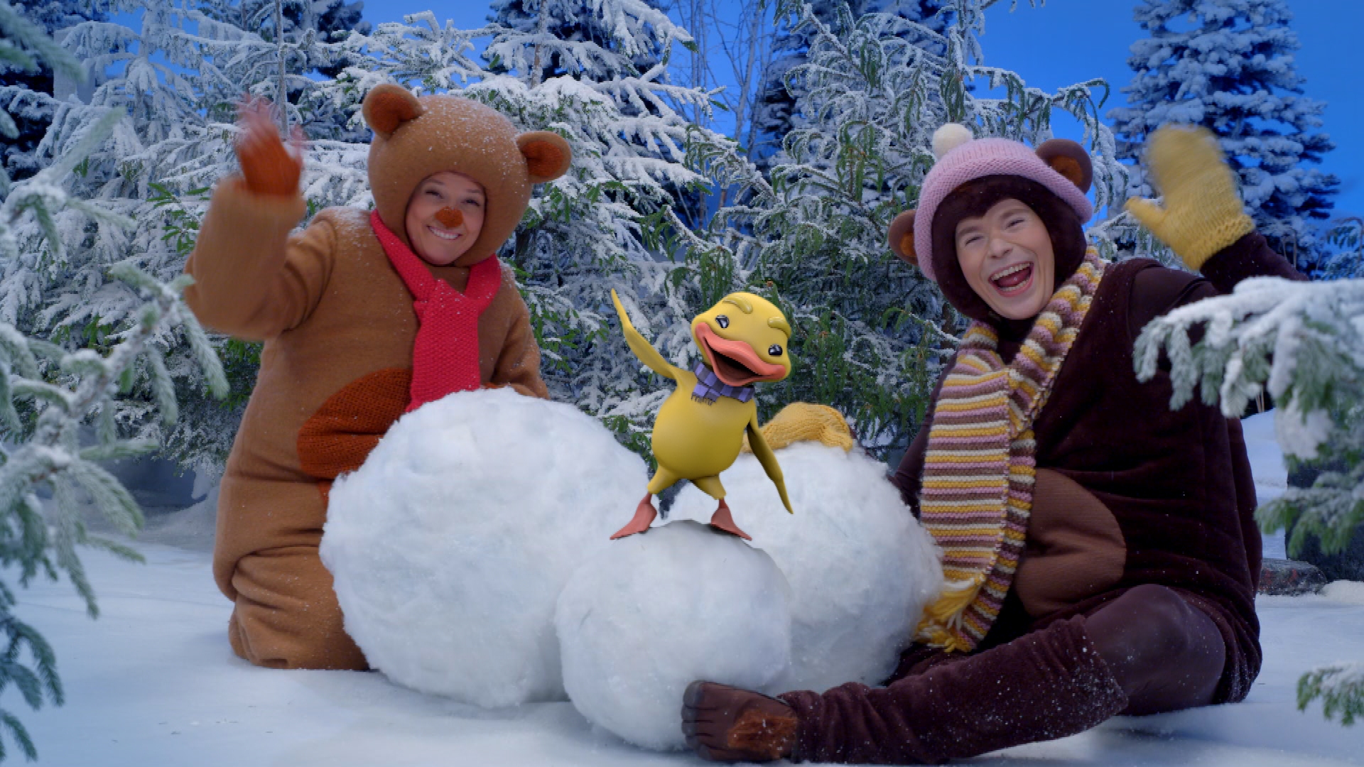"description": "Ensilumi sataa nyt! Nallen, Apinan ja Ankan riemukkaat talvileikit alkavat.",