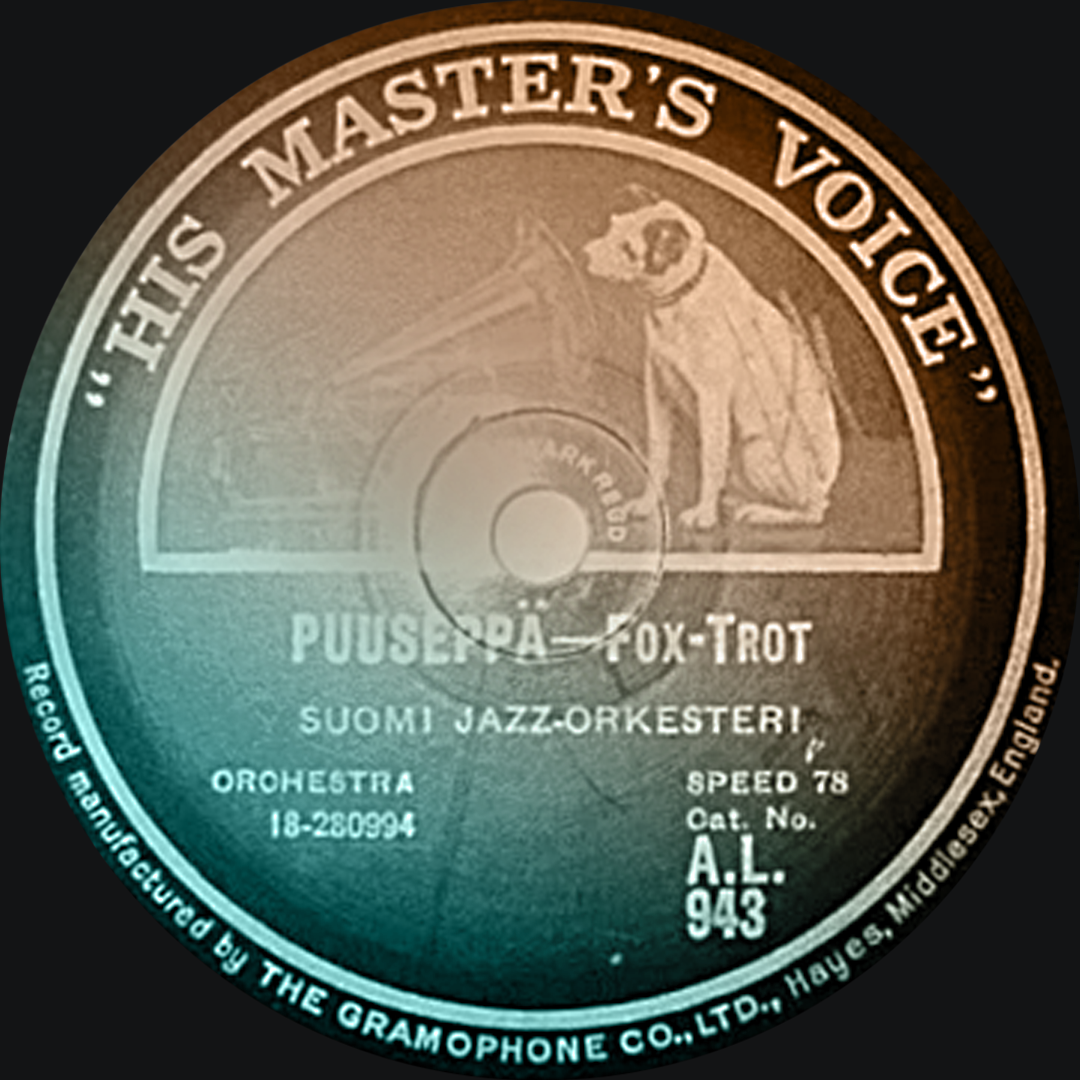 "description": "Virolaistaustaisten veljesten Robert Konnon (1889–1939) ja Hannes Konnon (1892–1942) perustama Suomi Jazz Orkesteri aloitti toimintansa 1927. Ensimmäiset levytykset ovat vuodelta 1928. Niistä erityisesti kolme nousi myyntimenestyksiksi: Puuseppä, Kohtalovalssi ja Anna, oi armas Anna.\n\nPuuseppä, jota pidetään Suomen ensimmäisenä humppalevytyksenä, on kirjoitettu Lahden puuseppien ammatiosaston vuosijuhliin 1925. Tanssiorkestereilla ei aluksi ollut laulusolisteja, laulu ei olisi kuulunut äänentoiston puuttuessa, mutta joskus joku orkesterin jäsenistä saattoi laulaa kertosäkeen megafoniin. On arveltu, että Suomi Jazz Orkesterin levyllä Puusepän solisti voisi olla Konnon veljeksistä Robert, joka istuu kuvassa keskellä harmonikka sylissään. Tieto on kuitenkin epävarma. Äänilevyn keskiöön ei ollut tapana kirjoittaa laulusolistin nimeä. Levyllä lauletaan vain kertosäe \"Jos elää kuolla tahtonet…\"\n\nRobert ja Hannes Konno syntyivät Helsingissä virolaisen isän ja ukrainalaisen äidin nelilapsiseen perheeseen. Veljekset aloittivat soitto-oppilaina Helsingissä Venäjän armeijan nk. Turun kasarmilla. Molemmista tuli taitavia kornetisteja ja trumpetinsoittajia. Harmonikkaa he oppivat soittamaan työskennellessään Fazerin soitinkorjaamolla. Suomen kansalaisuutta perhe anoi Suomen itsenäistymisen jälkeen ja sai sen 1920.\n\nToimiessaan kapellimestarina Porvoossa 1921–1931 Hannes Konno teki satoja sävellyksiä ja sovituksia vaskiseitsikolle ja puhallinorkesterille. Puhallinmusiikki kuitenkin syrjäytyi, kun kansa hurmaantui haitarijazziin ja uudella tyylillä soittaviin orkestereihin.\n\nKuvassa Suomi Jazz Orkesteri äänittää Fazerin tiloissa 1928. Taustalla keskimmäisenä seisoo Fazerin konserttitoimiston johtaja, säveltäjä Ernest Pingoud, jonka ansiosta Fazerin soitinkorjaamolla työskennelleet muusikot saattoivat muodostaa levyttävän yhtyeen. Museovirasto. Kuvaaja Eric Sundström.\n\nToimittaja: Laila Tarpila",