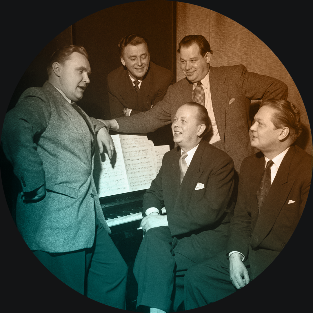 Kipparikvartetti ja säveltäjä Harry Bergström vuonna 1951. Museovirasto. Kuvaaja: UA Saarinen.