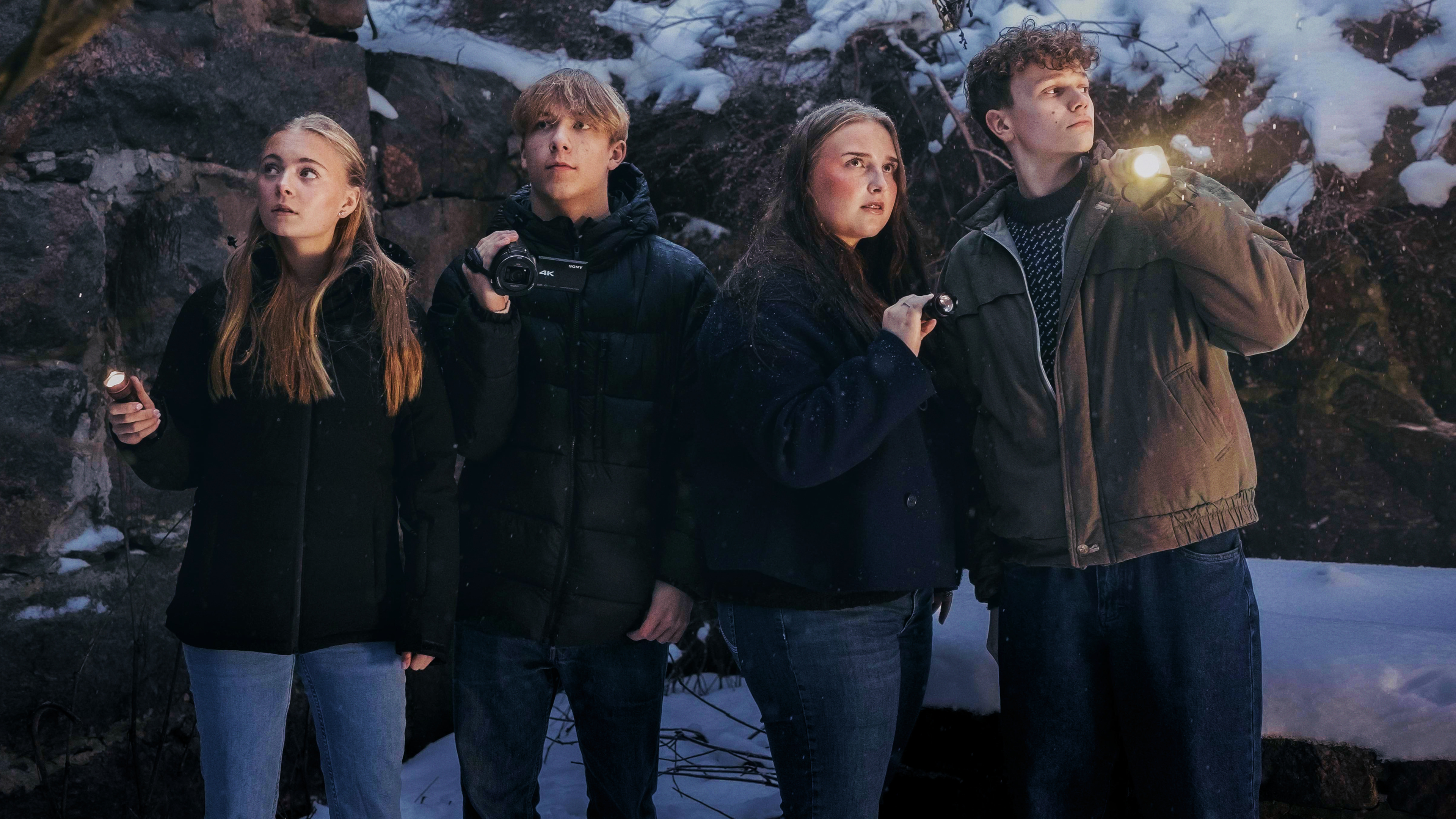 Card Description: Alvin, Isac, Emma ja Leona etsivät Suomen ruotsinkielisiltä alueilta paikkoja, joissa kummittelee, ja kuvaavat siellä kokemuksiaan. Miltä oikeasti tuntuu käydä pelottavissa paikoissa? Tuotanto: Parad Media, 2025. Card JSON{