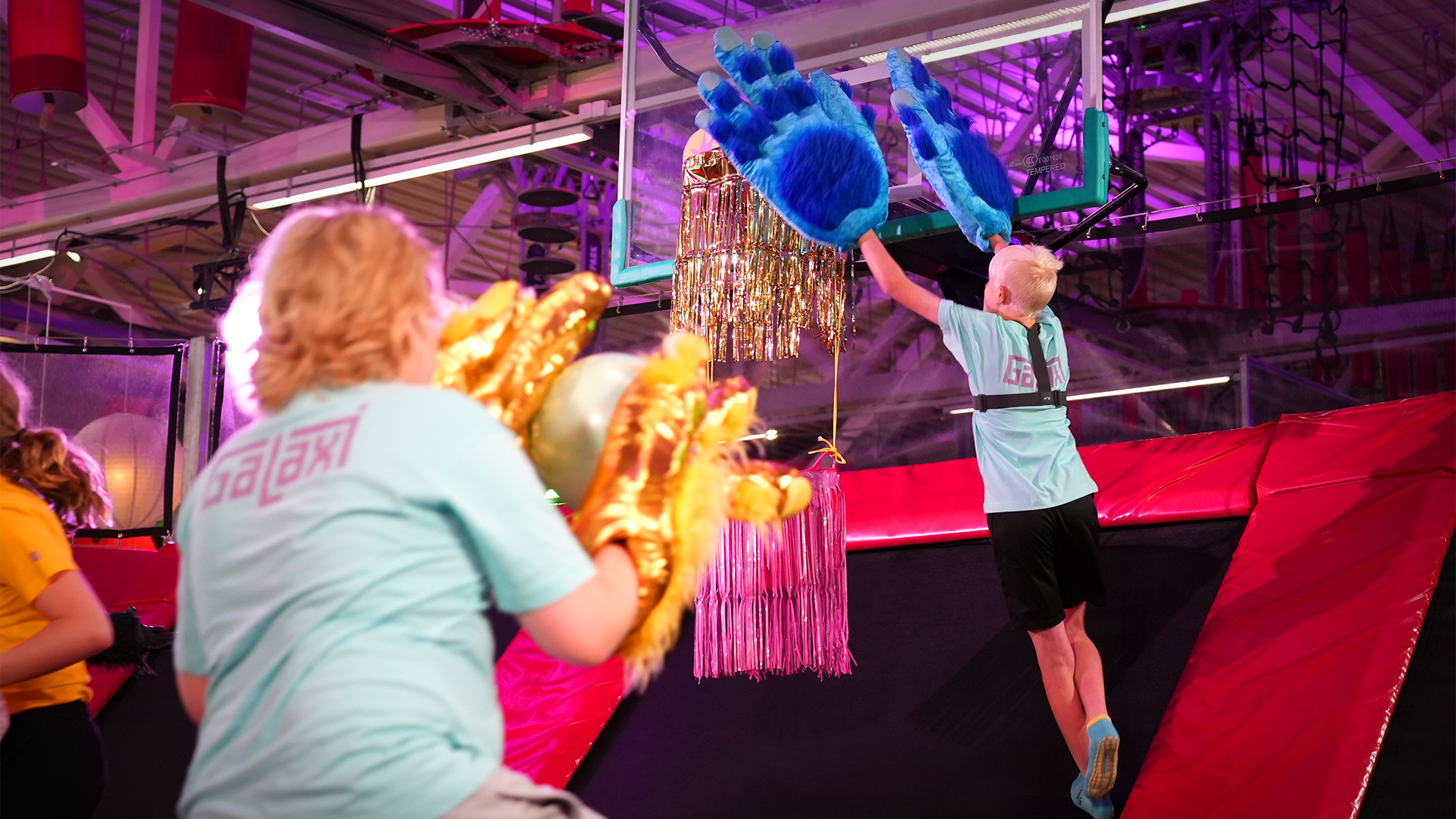 Card Description: Galaxin supersynttäreillä joukko mukaan valittuja koululaisia pääsee eeppiseen kolikkojahtiin yhdessä Galaxin juontajien kanssa! Supersynttärit on täynnä minipelejä, joista voi ansaita gorillakolikoita. Gorillakolikoita pääsee käyttämään ihmiskourassa, jonka avulla pääsee rohmuamaan herkkuja ja Galaxi-tuotteita yllätysaltaasta. Jännitystä jaksoihin tuo tiukka aikapaine ja gorilla, joka yrittää varastaa kolikoita! Card JSON{